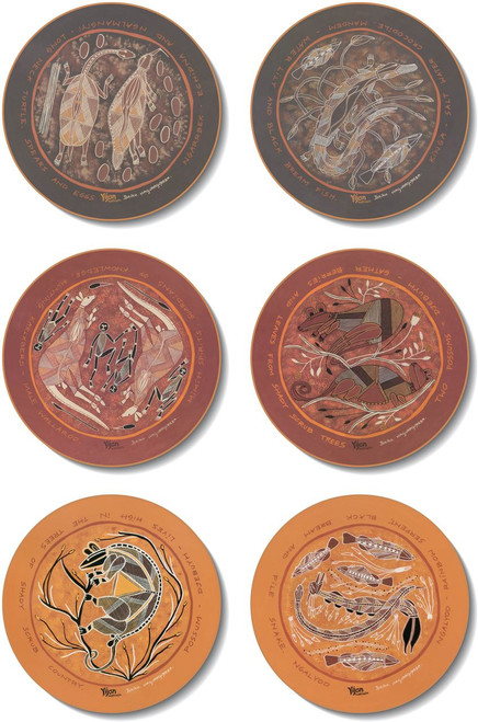 Compare Quick view Cinnamon Walkabout Coasters Log in for pricing The coaster's come in a set of 6 and all designs have a separate set of matching of 6 placemats available. They will brighten up anyone's dining table and help to protect your table from heat and moisture, while they clean easily with a damp... CMC304 Log in for pricing Compare Quick view