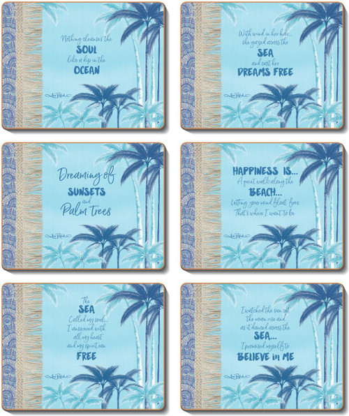 Compare Quick view Cinnamon Palm Beach Placemats Log in for pricing The placemat's come in a set of 6 and all designs have a separate set of matching of coaster's available. They will brighten up anyone's dining table and help to protect your table from heat and moisture, while they clean easily with a damp... LPP380 Log in for pricing Compare Quick view