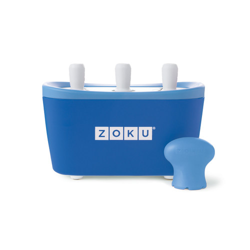 Now available in five juicy colors! The patented Zoku Quick Pop Maker freezes ice pops in as little as seven minutes right on your counter top without electricity. Quickly make striped pops, yogurt pops or (for the first time ever at home) flavored core pops. To enjoy Quick Pops at a moment’s notice, simply store the compact base in your freezer.
